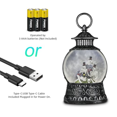 Creepy Halloween Decoration : The Skeleton family halloween snow globe features a vintage black border design, as well as carefully crafted interior scenes, all of the internal scenes of the product are hand-carved by professional masters and are lifelike. Suitable for decorating Halloween for any occasion, great for table tops, fireplaces, and centerpieces.