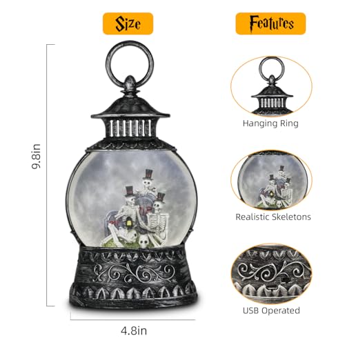 Creepy Halloween Decoration : The Skeleton family halloween snow globe features a vintage black border design, as well as carefully crafted interior scenes, all the internal scenes of the product are hand-carved by professional masters and are lifelike. Suitable for decorating Halloween for any occasion, great for table tops, fireplaces, and centerpieces.