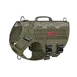 OneTigris No Pull Tactical Dog Mesh Harness for Medium Dogs, Aire Mesh Breathable Military Dog Molle Vests with Handles, Service Dog Vest Harness for Walking Hiking Training Green |