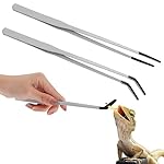 Lasnten 2 Pcs Extra Long Stainless Steel Reptile Feeding Tongs with Rubber Tip 10 Inch, 10.5 Inch Bearded Dragon Aquarium Straight and Curved Long Tweezer Terrarium Feeder Tool for Tank(Silver) |