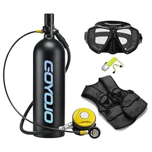 GOYOJO Scuba Tank Kit Portable, 2L Mini Diving Tank Pump Adult with Diving Flashlight & Snorkel Mask, for Underwater Exploration Emergency Rescue Work, 3 Inflatable Ways Certification