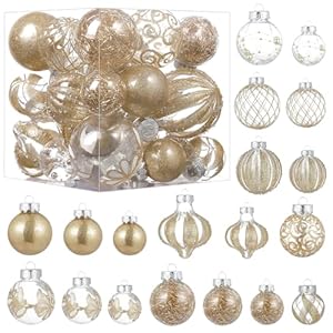Christmas Ball Ornaments Set,30pcs Shatterproof Plastic Decorative Christmas Ornaments Hanging Xmas Tree Baubles Set with Stuffed Delicate Glittering Decorations for Xmas Holiday (Champagne)Champagne Christmas Ball Ornaments:These Christmas ball decorations are made of durable and environmentally friendly plastic with excellent shatter resistance. These Christmas balls have shiny decorations and a transparent glaze base, which are perfect for hanging on your Xmas tree and decorating your Home with them,this will become part of your vacation.
