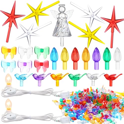 Bountiful Decorative Accessories: the package includes 235 ceramic Christmas tree decorations; From a transparent angel topper, colorfully assorted five-pointed star toppers, and multicolored twisted light bulbs to butterfly and bird ornaments, this set has everything you need to create a captivating holiday aesthetic$23.99 -