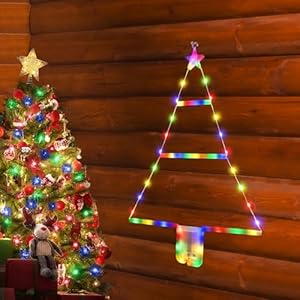 Christmas LED Ladder Lights – The ladder is 3.3 ft high, with 132 LED multicolor LED string lights, and the lead cable is 9.8 ft long. Ladder design Christmas lights will give you a special view. You can decorate it with Santa Claus, If you hang it near the window or wall it looks like a climbing Santa coming through the ladder, Very fun, cute, and interesting. yet bright and charming.NOTE: Christmas ladder lights don’t come with Santa, you are free to DIY any decorations!!!
