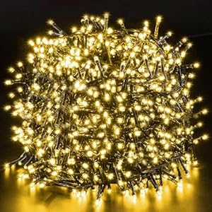 WIDE VARIETISE OF HOLIDAY DECORATION OPTIONS – Warm white outdoor christmas lights with 8 different patterns: Combination, In Waves, Sequential, Slo-glo, Chasing/Flash, Slow Fade, Twinkle/Flash, and Steady On, creating a variety of festival atmosphere. With the 8 functions so you can choose the perfect light show, these Xmas fairy lights can also remember your settings so you don’t have to programme your lights every time.$39.99 -