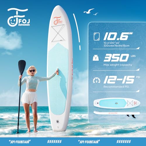 MORE YOUTHFUL DESIGN: This inflatable paddle is 10.6 feet long and 30 inches wide,( 10.8 feet long and 33 inches wide ),Two size you can choose .allowing you to get better stability and balance when standing. The colors of macaron blue and white can give this paddle more vitality, making you more outstanding in the crowd.