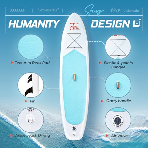 MORE YOUTHFUL DESIGN: This inflatable paddle is 10.6 feet long and 30 inches wide,( 10.8 feet long and 33 inches wide ),Two size you’ll choose .allowing you to recuperate stability and balance when standing. The colors of macaron blue and white can give this paddle more vitality, making you more outstanding in the crowd.