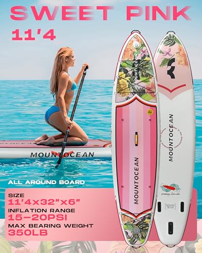 【Material Durability】: MOUNTOCEAN Inflatable paddle board constructed from Polyvinyl Chloride (PVC), which highly durable and resistant to wear and tear. This ensures that the surfboard can withstand the different conditions of use in the lake,river and ocean.The PVC material is also puncture-resistant for multiple seasons of regular use.
