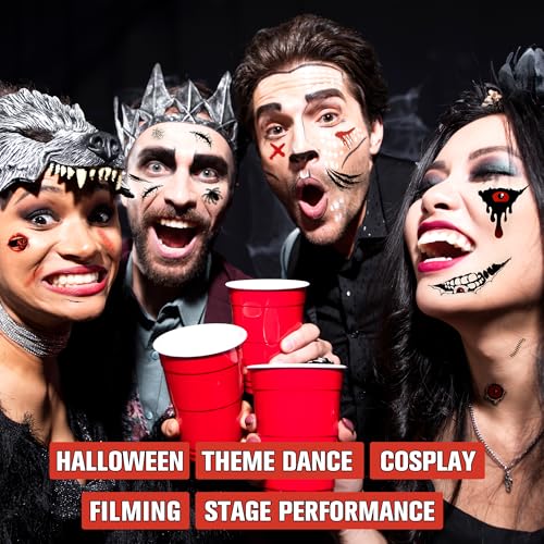 Diversified design: This unique Halloween temporary facial tattoo set features more than a few patterns such as mouth, bloodstains, spiders, bugs, eyes, and claws. Mix and match these designs to create the ultimate personalized and quirky appearance that stands out in any event.