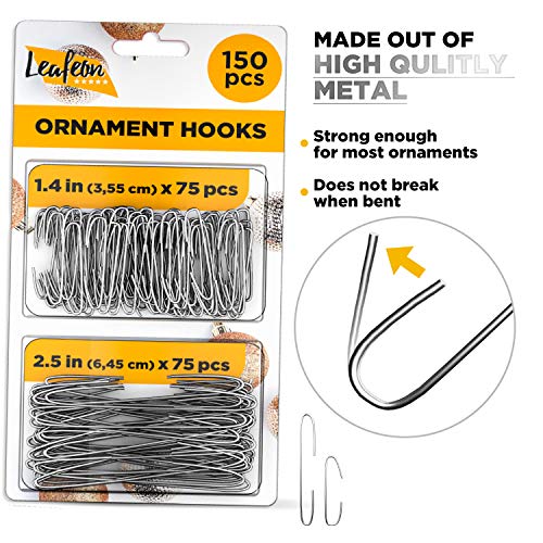 🎄 INCLUDES: 150 Silver Metal Ornament Hooks. Great for usage all the way through the Christmas decoration process. Use for both small and large ornaments. 2 Sizes Included: 75 pcs ¼” hooks and 75 pcs ½” hooks.