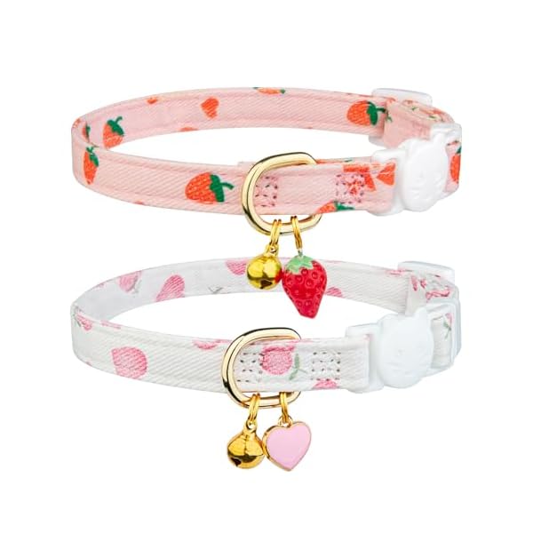 2 Pack Cotton Breakaway Cat Collar Pink Strawberries