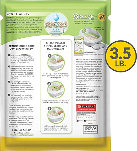 One bag of mess-minimizing Breeze litter pellets lasts up to a month and offers a unique alternative to clay litter