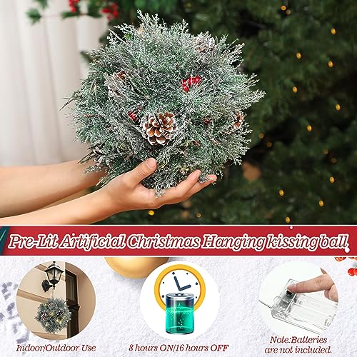 Exquisite and Joyful Home Decor: you are going to receive 2 pieces of 10 inch kissing balls Christmas with warm white LED string lights and timer, with their cute appearance and exquisite design, they’ll add a joyful holiday atmosphere to your home; Their beautiful decorative hanging ornaments will impress your guests