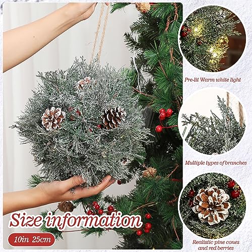 Quality Materials: made mainly of pine cones, artificial berries, 100 pieces of artificial frosted branches, and artificial pine needles, these kissing balls Christmas outdoor show craftsmanship and durability; The materials will ensure a beautiful appearance and to resist daily use
