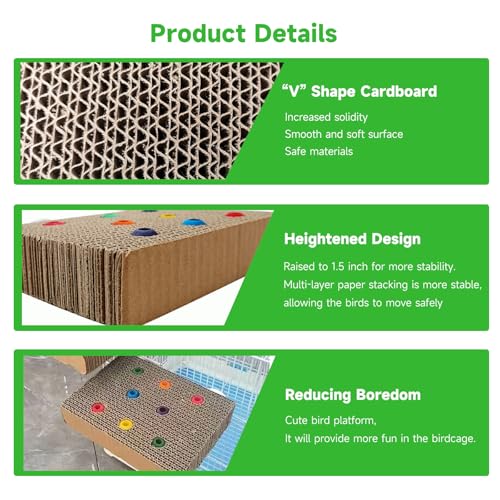 Exercise and Play: The cardboard bird stand can exercise the bird’s grip. The multi-layer cardboard is can be utilized as a bird’s chewing toy, which is secure and cute.