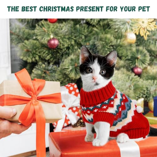 【2Pcs in 1 Package】you are going to get 2pcs Christmas cat sweaters in each package. A Xmas Elf sweater with three hairballs on the back. and a red holly wave stripe sweater with three hairballs on the back. Enough quantity to replace and two different patterns dog sweater clothes can meet your more needs.