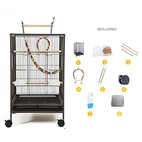 【ULTRASTRONG CONSTRUCTION】: Our extra large bird cage is crafted out of premium metal covered with antirust hammered paint. Welded frame and excellent rust and water resistance make this parrot cage a durable and safe pet home with good quality.