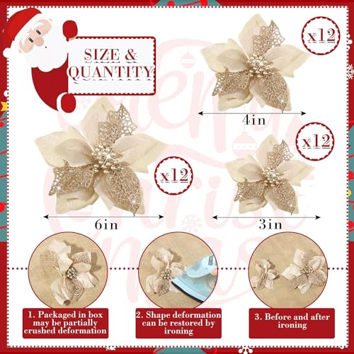 36 Pieces Christmas Glitter Poinsettia Faux