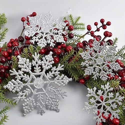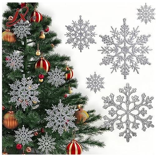 【Glitter Snowflake Ornaments Set】These glittery snowflake Christmas ornaments made of quality plastic and glitter powder, Sparkly glitter, Gorgeous and reusable. Each snowflake can sparkling in the lights as a result of the surfuce was covered with glitter. These silver glitter snowflakes tree ornaments add a lot more sparkle to your Christmas tree decorations.