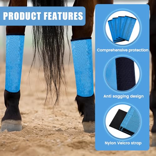 🐴【Excellent Material】Horse fly boots made of top of the range mesh material. It has excellent breathability and comfort, allowing the horse to enjoy a cool feeling in hot weather.