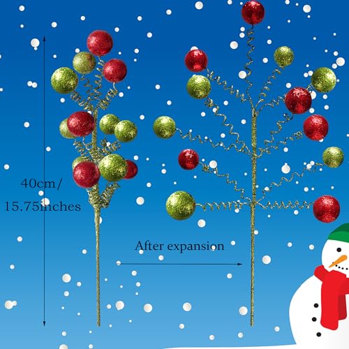 Christmas theme colors: as shown within the picture, the glitter ball Christmas tree picks are red and green colors, consistent with the Christmas theme