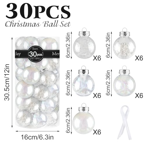 PERFECT GIFT CHOICE: Our 30 pcs clear plastic Christmas ball ornaments are the perfect gift for your family, friends, and loved ones. Presented in a beautiful box, these ornaments are ideal for crafters and DIY enthusiasts