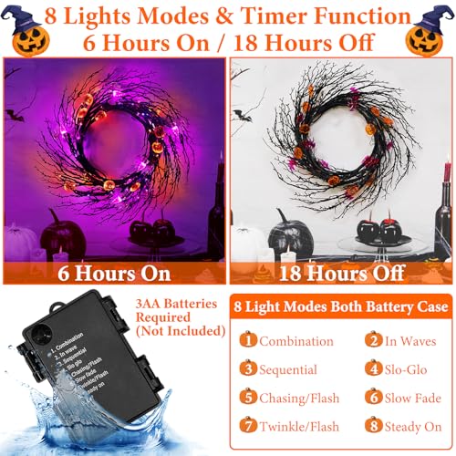 [Battery Operated & Timer] Press the Halloween garland battery box button, the light will be automatically timed and keep on for 6 hours ,automatically turn off for 18 hours,With a black waterproof battery box,Powered by 3 AA batteries(not included).