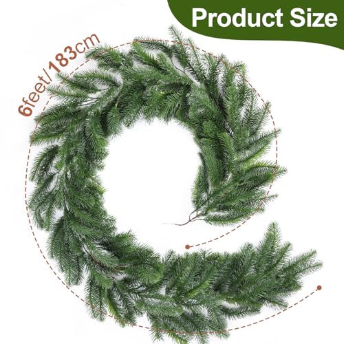 【Realistic Appearance】- These pine leaves on the garland are made of special material which are real touch and durable. For Christmas indoor or outdoor decoration, this evergreen garland makes the whole room look comfy and relaxing.