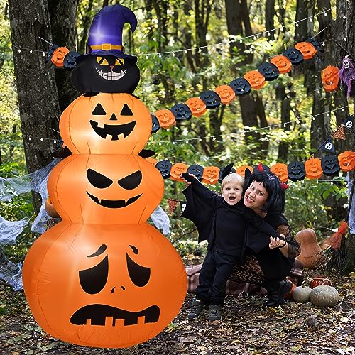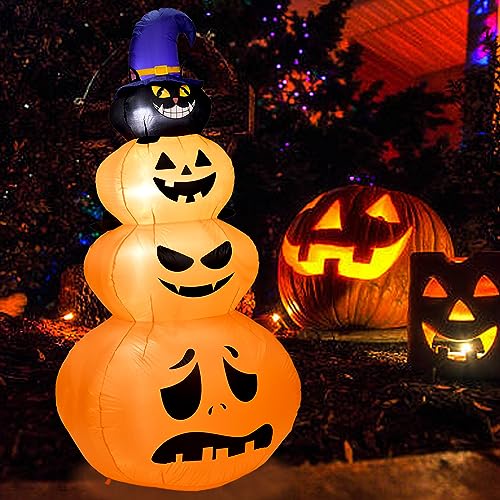 【Premium Materials】This 7.5 Feet Halloween inflatables pumpkin are made of thickening 190T polyester fiber which is resistant to rips and tears.The excellent stitching improves the durability of the Halloween inflatable to verify years of usage. It is easy to set up, take down and storage.