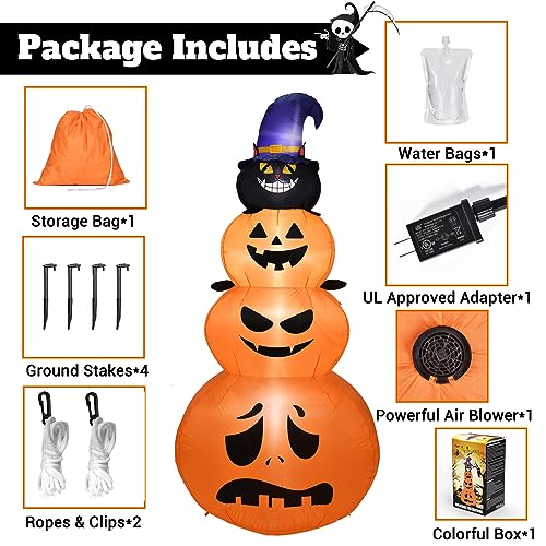 【Premium Materials】This 7.5 Feet Halloween inflatables pumpkin are made of thickening 190T polyester fiber which is resistant to rips and tears.The excellent stitching improves the durability of the Halloween inflatable to ensure years of usage. It is easy to set up, take down and storage.