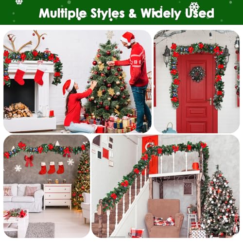 ★【Perfect For Any Occasion】Can be utilized for Christmas party, wedding, bedroom, garden, balcony, swing stand, shopping malls, mantels, doors, table centerpiece and covered front porch staircase and many other decorations. Perfect match with our Classic Collection Splendor Red Green Silver and White Christmas wreath. Trimmed with red berries and flowers