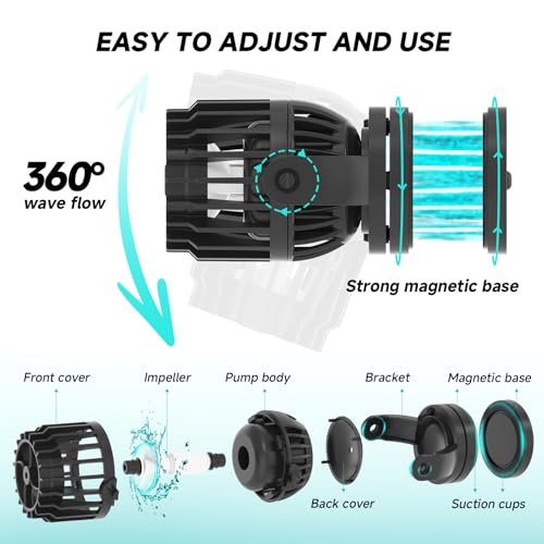 STRONG MAGNETIC & SILENT – The aquarium circulation pump includes a newly strong magnetic suction cup for more reliable adhesion and easy installation at the aquarium wall. Also includes an rubber shock-absorbing design to minimize vibrations, ensuring an silent working enviroment.