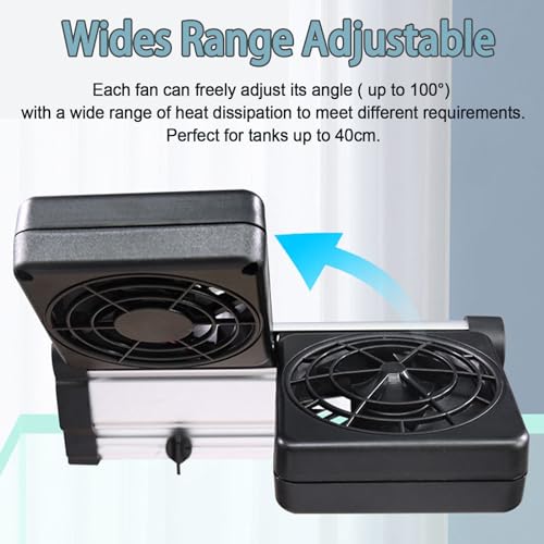 🍃【Customizable Cooling】: With 2 wind speed options and a wide angle adjustable design (up to 100°), you’ll be able to easily tailor the airflow to fit your tank’s specific needs. Perfect for tanks up to 40cm, this fan offers versatile cooling solutions for quite a lot of aquarium setups.