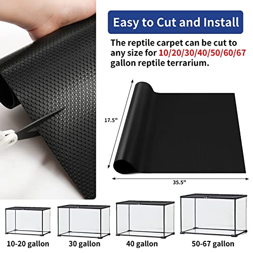 EASY TO CUT AND INSTALL: The reptile carpet size is 17.7″ x 35.5″, fits for terrarium sizes 36″Wx18″D, such as reptile tank 20 gallon, 30 gallon, 40 gallon, 50 gallon, 60 gallon and smaller. If your reptile terrarium is some other size, please do not fret as it may be cut to any size you wish to have easily. The material is high desity soft, very easy to cut to size you wish to have