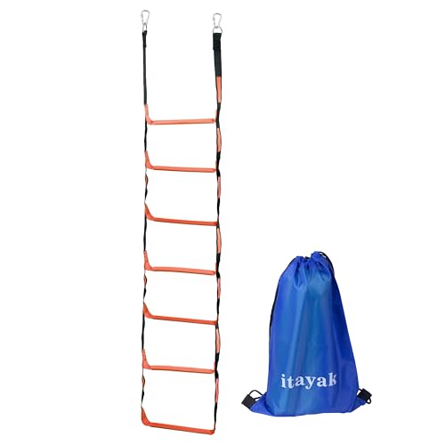 Easy Climbing: The inside of the rungs are round shape reinforced fiber tube with braided nylon on the outside, they are reliable and not slippery. When you step on the ladder, the steps is thick & tough, it has moderate cushioning and will not collapse inward, make it easy for you to step and hold the rope ladder.