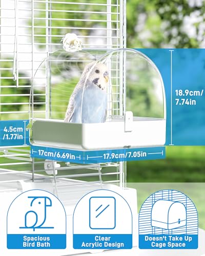 Size: The large size of 17.9 * 17 * 18.9cm/7.05 * 6.69 * 7.74inches creates a comfortable space for your bird, perfect size for small to medium birds, like lovebirds, finches, parakeets, mannikin, and Cockatoos. (Not to be used with round or curved wall cages)