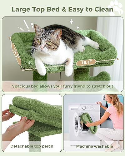 [Easy to Clean]: The removable cover on top of the cat perch makes cleaning a breeze (pro tip: it’s machine washable!). Covered in carpet fabric, this cat stand may also be easily cleaned with a lint roller or vacuum cleaner, ensuring a clean and inviting resting place for your loved one cats.
