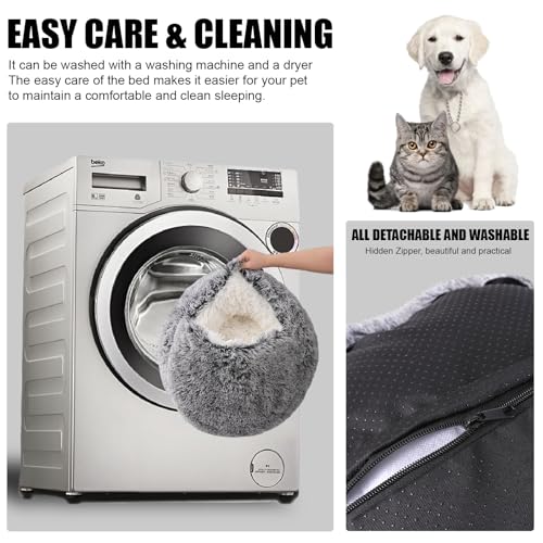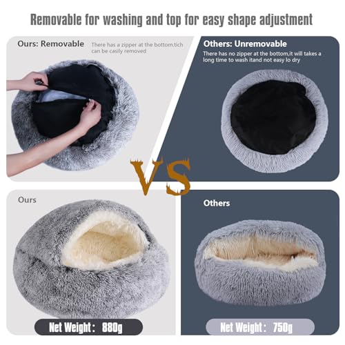 【High Quality Materials】This pet bed with cover is made of soft synthetic plush material, filled with high fluffy pp cotton inside, with strong support and warm, comfortable and soft, which can keep your small dog or cat warm in winter