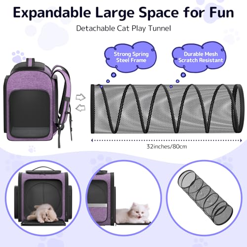 Pawtners Cat Backpack Carrier with Play Tunnel,
