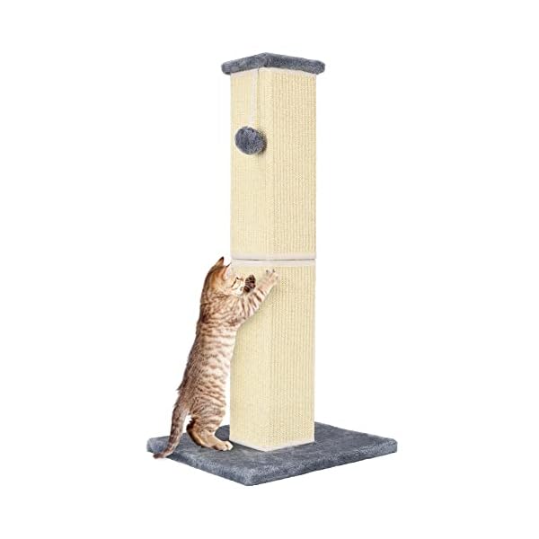 Natural Sisal: The 32-inch high natural sisal cat scratching post is made of high-quality, natural sisal material that is gentle on your cat’s paws and completely safe for them to scratch and play with.