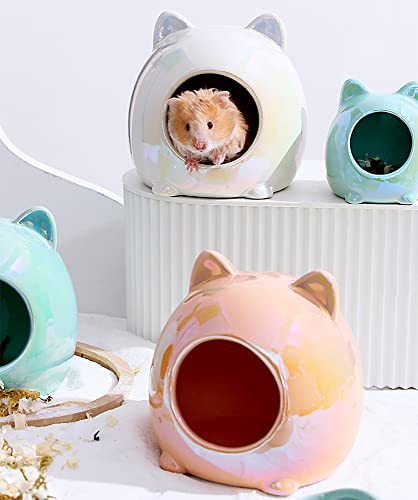 1. Made of high quality and durable chew-proof ceramic material, easy to clean and odour resistant. The hamster house is smooth and flawless throughout, providing a safe and comfortable space for your little pet to rest and play.