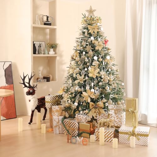 Gold Christmas Ball Ornaments:These Christmas ball decorations are made of durable and environmentally friendly plastic with excellent shatter resistance. These Christmas balls have shiny decorations and a transparent glaze base, which are ideal for hanging on your Xmas tree and decorating your Home with them,this will grow to be a part of your vacation.