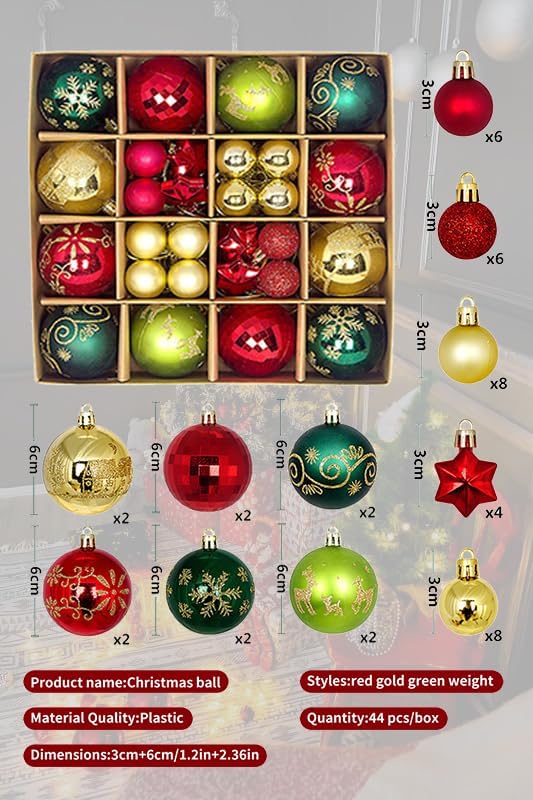 🎄Perfect Choice:you’re going to receive 44 pieces of Christmas Balls in 6 different colors and shape, providing ample decorations for your circle of relatives and party needs. Improve the beauty and diversity of your Christmas tree, showcasing the cultural atmosphere of holiday tradition.