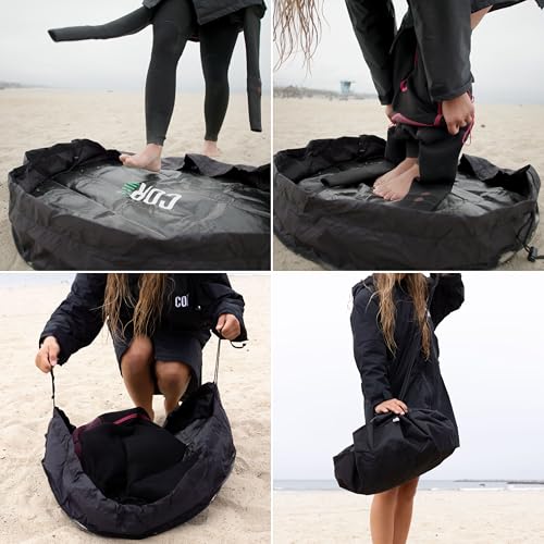 Change anywhere with the Cor Surf Wetsuit Changing Mat. The COR Surf Change Mat doubles as a water-tight carrying BAG so you’ll change in the parking lot and keep your wet wetsuit separate from your items and would possibly not leak in your car.