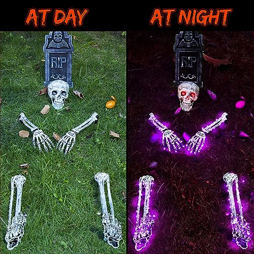 Good Choice for Halloween: the lawn skeleton hands are spooky addition to any Halloween scene or decoration; Indispensable items for theme parties, haunted houses, cemeteries, gardens, yards, lawns, and so forth.; Realistic and scary lighting enough to scare away your families and neighbors for a good Halloween experience