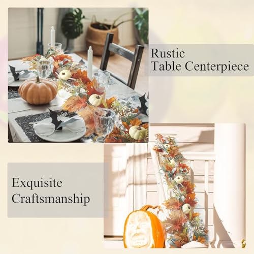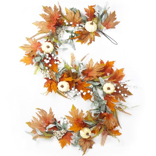 Fall Garland for Mantle,6FT Fall Leaves Pumpkin