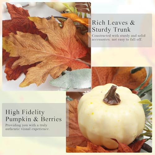 🎄【Sturdy Trunk & Easy to Hang】The inner material of trunk is iron wire which will also be twisted freely , Each and every component is securely fastened to verify longevity and resilience.The autumn garland has a hook that may be hung anywhere you need.