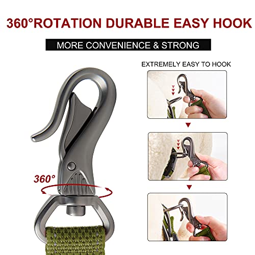 【ADVANCED EASY HOOK】- This metal clasp is designed super easy and quick to clip on the D-ring, Just hold this clasp and lightly slide it over the D-ring, and automatically it locks. Meanwhile, 360° rotating, heavy-duty rustproof swivel alloy clasp, effectively avoids the leash twisting and tangling.