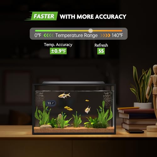 ACCURACY MEASUREMENT: The digital thermometer built-in high-precision temperature measurement chip, some subtle temperature changes can be clearly sensed. and it has a range between 0 °F to 140 °F. and a sampling interval of five seconds, which is ideal for your aquarium
