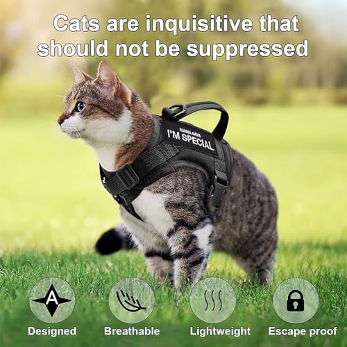 Durable and Breathable:This cat harness is made of 1000D nylon material, which is very sturdy .Inner is thick soft air mesh,comfortable and breathable enough.Because of this design,the harness is very lightweight,only 135 g.It will not impose any burden on your little pet when put on